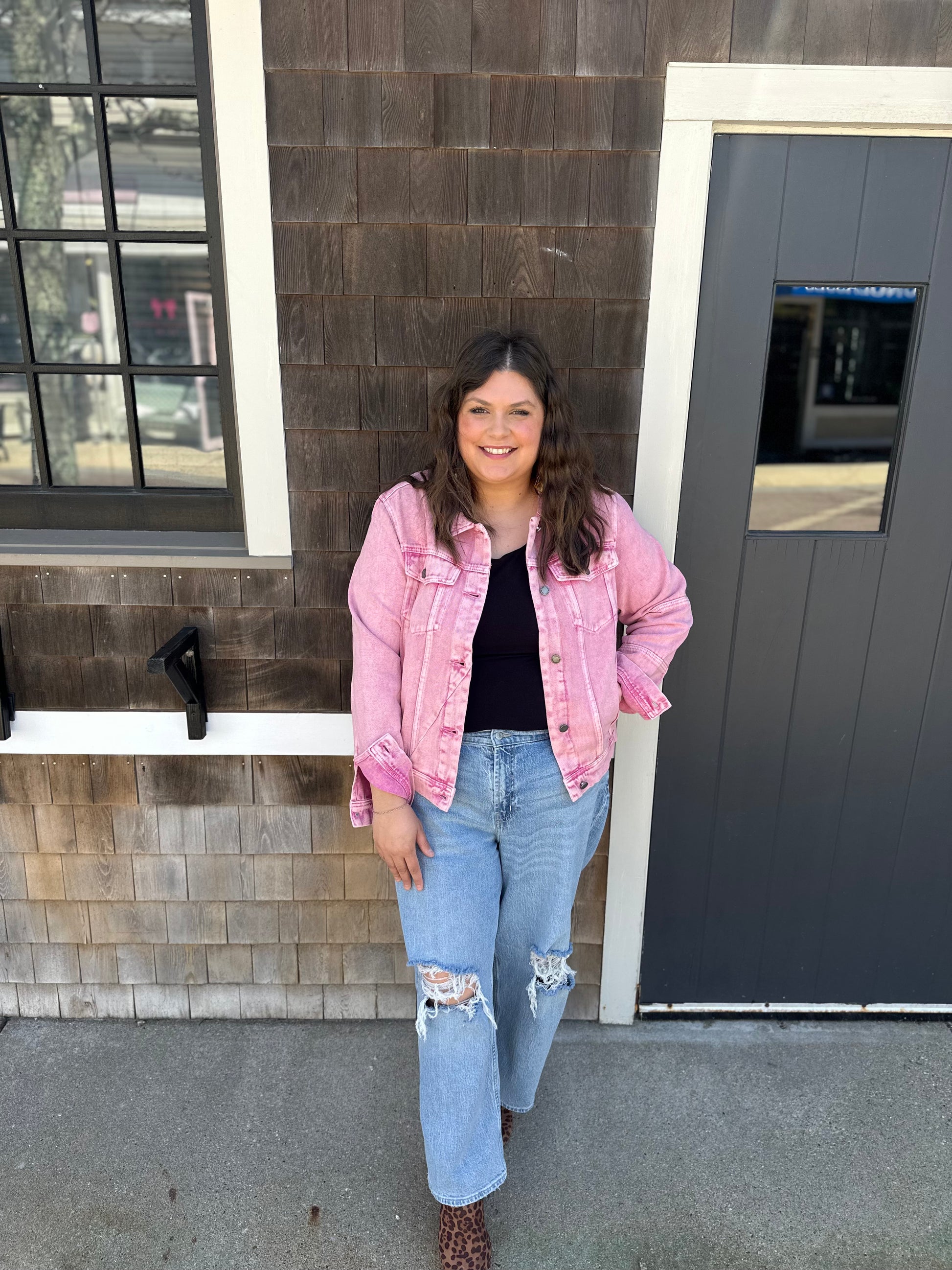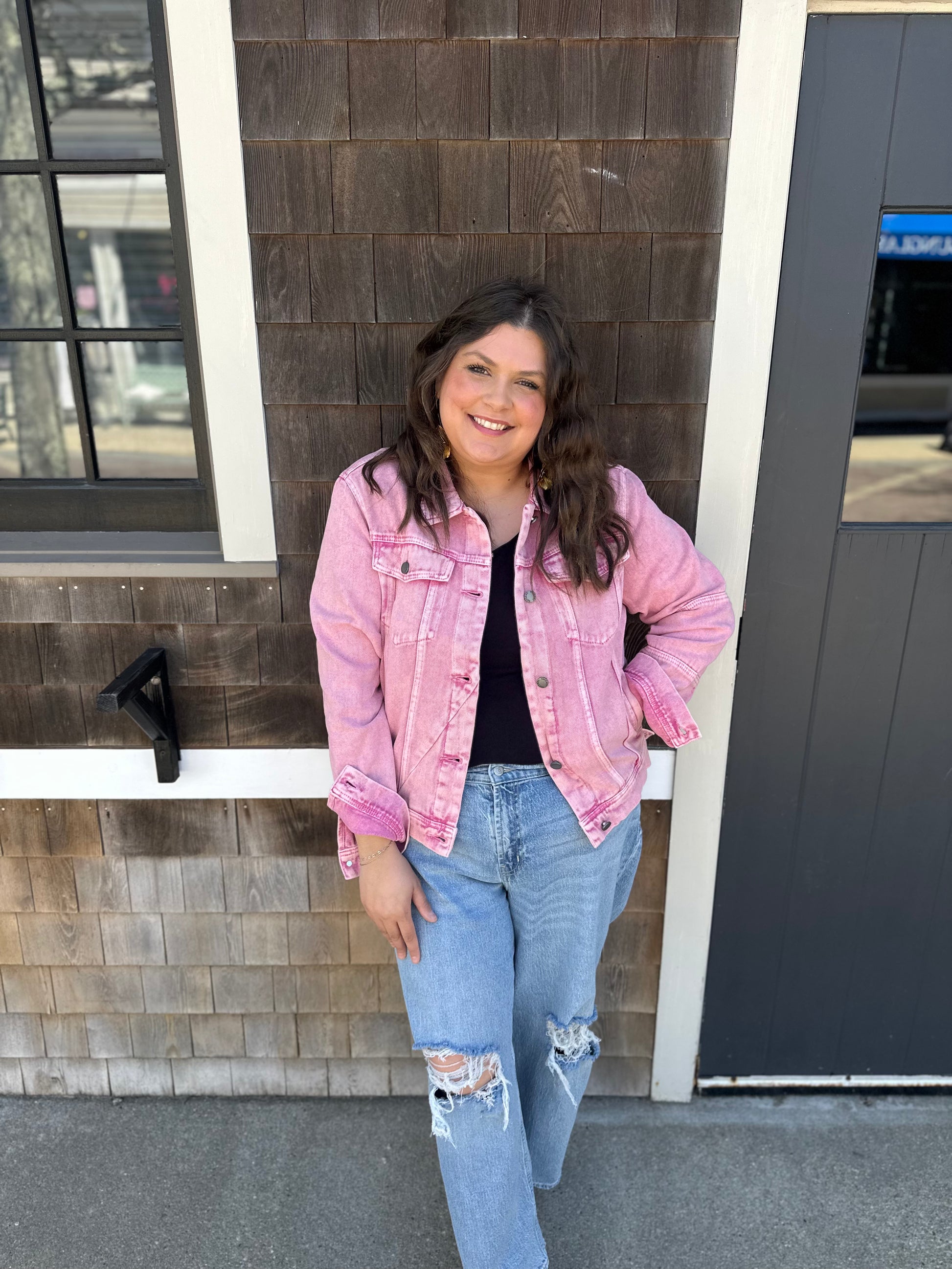 Introducing Dreamhouse Denim, the ultimate addition to your wardrobe! Our classic trucker denim jacket boasts a cropped fit for a flattering silhouette. The asymmetric front seam cut and two sleeve block design add a unique touch of style. With a collared neck and convenient button closure and cuffs, this jacket is perfect for any occasion. Upgrade your look with Dreamhouse Denim today!